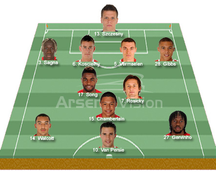 Wilshere, Diaby, Benayoun, Coquelin and Ramsey all miss out though injury or illness which is quite amazing. Even Tomas Rosicky is a doubt but I think he will have to be patched up and wheeled out because we really do have no more options, at least from our first team squad. We ended the game at Liverpool with our young prodigy Alex Oxlade-Chamberlain in the advanced attacking midfield role and I suspect that is the position where he will start the game tonight. That is what I think