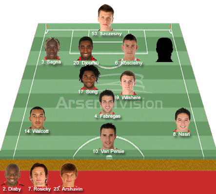 Once again we started the game without captain Cesc Fabregas and Samir Nasri. Laurent Koscielny, Jack Wilshere and Theo Walcott also missed the game through injury so we started the game quite thin on the ground to begin with. We still managed to put together a pretty strong team which
