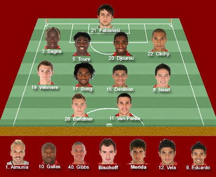 As ever we have a few absentees excluded from the game for various reasons. Rosicky, Cesc, Diaby, Eboue, Arshavin, Adebayor and possibly ex Cardiff midfielder Aaron Ramsey miss out. Clichy should return to the starting eleven after a head injury against Tottenham.