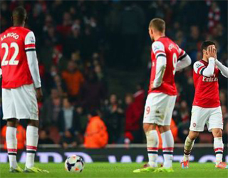 We looked like a boxer going up against one of the hardest hitters in the business, jabbing at our opponent without once putting our guard up. Inevitably Chelsea struck with pretty much the first blow and Eto'o was on hand to curl it around Szczesny. Moments later André Schürrle drove a low shot into the corner of Szczesny's net Then in full self implosion mode Oxlade-Chamberlain stuck out an arm to block a Hazard shot that was going wide anyway. The referee clearly not having seen the incident was trying to communicate with one of his officials. Then mistaking Chamberlain he sent off Kieran Gibbs even though Chamberlain was seen telling the referee that he was the guilty culprit.