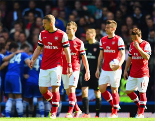 We looked like a boxer going up against one of the hardest hitters in the business, jabbing at our opponent without once putting our guard up. Inevitably Chelsea struck with pretty much the first blow and Eto’o was on hand to curl it around Szczesny. Moments later André Schürrle drove a low shot into the corner of Szczesny’s net Then in full self implosion mode Oxlade-Chamberlain stuck out an arm to block a Hazard shot that was going wide anyway. The referee clearly not having seen the incident was trying to communicate with one of his officials. Then mistaking Chamberlain he sent off Kieran Gibbs even though Chamberlain was seen telling the referee that he was the guilty culprit.