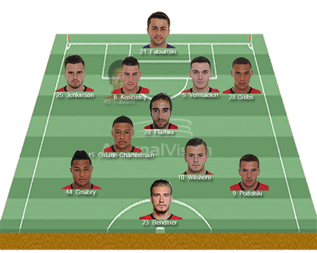 Gedion Zelalem missed the League cup run due to injury and is said to feature at some point tonight. There was an awful lot of hype on him during the pre season. I certainly put my two cents in. But his injury has made him practically disappear off the radar. Not a bad thing I guess given his tender age of 16 years. In my below graphic I have him on the bench but the more I think about it, the more I think he may just start ahead of Jack Wilshere.