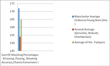 Again, poorly really. The average sum of the Manchester players’ percentages is almost 20 percent higher than that of their Arsenal counterparts.