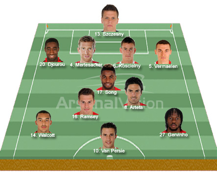 The midfield clash looks mouthwatering on paper. Toure, Barry and Silva cutting inside vs Song, Ramsey and Arteta. David Silva is likely to start from the left so Johan Djourou could be very important for Arsenal. It would have been preferable if Laurent Koscielny could have started at right back because if anyone can shut someone out of a game then it is him but Vermaelen being forced into left back means that Koscielny will be moved inside to partner Mertesacker once more. Which might even be a positive thing considering that Aguero is likely to start with Balotelli.