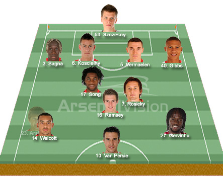 Gervinho’s position will depend on the form and fitness of Theo Walcott vs Andrey Arshavin. If Walcott is fit and starts then Gervinho will start from the left, if Arshavin gets the nod then Gervinho will play on the right. The rotation and link up between the likes of Gervinho, Walcott/Arshavin and Van Persie will be vital to our attacking play. Our speedsters should mean that Robin will no longer be isolated for any long periods of time.