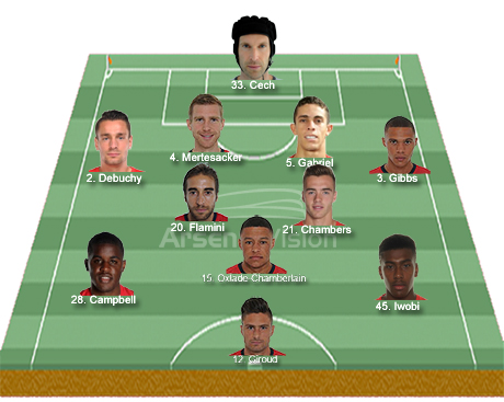 When I started writing this, I had Theo Walcott as our central striker but the more I think about it the more it makes sense to have the stable Giroud as the central pivot, especially given the inexperience of Campbell, Iwobi and Ox playing in what I imagine will be a different role for him.