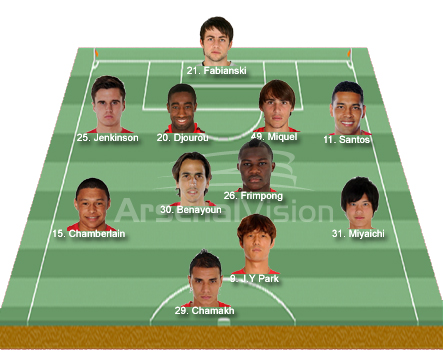 Ju Young Park will be a certain starter and I would imagine that Marouane Chamakh will also start the game so that throws up some interesting questions. Which position will Ju Park play? Chamakh can only really play as a central striker so Park will either join Chamakh up front or play a wider role. If Park plays a wider role then one of Ryo or Chamberlain will have to drop to the bench. If Wenger does revert to 4-4-2 then one of the midfielders will have to drop down to the bench so I am intrigued to know what will happen there.