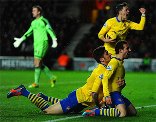 Giroud flicked in Sagna’s attempt on goal and then Cazorla kept up his excellent scoring record of recent weeks by hitting across the ball and past the keeper.