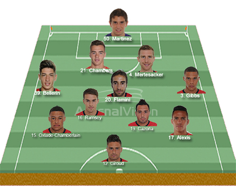 Subs: Szczesny, Koscielny, Maitland-Niles, Ajayi, Campbell, Podolski, Welbeck