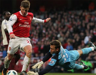 It was yet another afternoon where the opposition goalkeeper was handed the post match bottle of champers at the Emirates, I was beginning to think it was coincidence but after reading a recent interview from Dennis Bergkamp about finding corners  of the net, I wonder if our players are sometimes just ok with hitting the target.