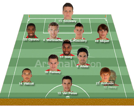 The rest of the team pretty much picks itself. Many will be hoping to see Thierry Henry start alongside Robin van Persie but I don’t think that would be sensible given Henry’s limited game time so far. I think he will correctly be used as an impact substitute and the left sided starting position will go to Andrey Arshavin who looked lively against Leeds United without the required end product. Hopefully with more games under his belt, he can start to produce the type of end product that we saw consistently in his first half season at the club.