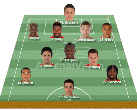 I was hoping that Laurent Koscielny would be available for selection but he has not made it which not only means that we lose his defensive recovery but we also miss the presence of Alex Song in midfield. Wenger is likely to start Kieran Gibbs over the impressive Santos due to the Englishman’s experience in these types of fixture.