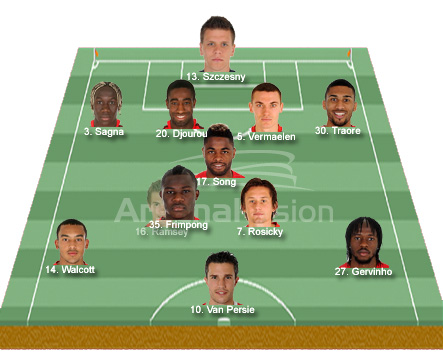 Given our one goal advantage and lack of midfield creativity, it will be very interesting to see how we approach the game. Will Arsene shy away from risking the inexperience of Frimpong and go for a more attacking midfield of Song, Ramsey and Rosicky. They would have a better understanding together and would add more guile, but adding Frimpong would give us a physical edge and an extra drive from midfield. It would also free either Rosicky or Ramsey to concentrate more on the creative side of the game. I personally hope to see the latter.