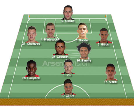 Subs: Macey, Bellerin, Monreal, Flamini, Iwobi, Walcott, Welbeck