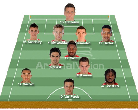 After our tired effort against Fulham, Arsene rested most of the troops in the midweek Carling cup game so we can expect a full squad, well at least the available players. Abou Diaby and Tomas Rosicky miss the game through injury which is a shame as they would have made our bench much stronger, those absentees may open the door for the likes of Alex Oxlade-Chamberlain who impressed once again in the Carling cup. A