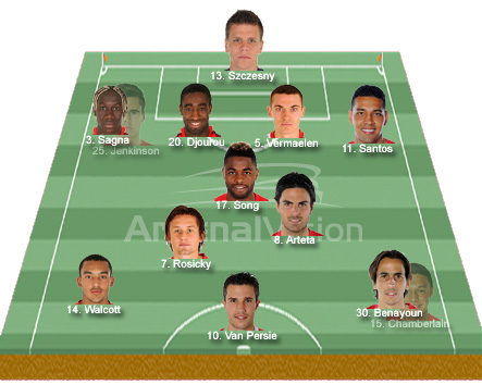 You would imagine that Arsene will want to keep the midfield and attack unchanged as defensive changes might be forced upon him. Aaron Ramsey may have been in contention to rest one of the older midfielders in Rosicky or Benayoun after a fighting display against City but I would now be surprised if Arsene tinkers with the rest of the team.